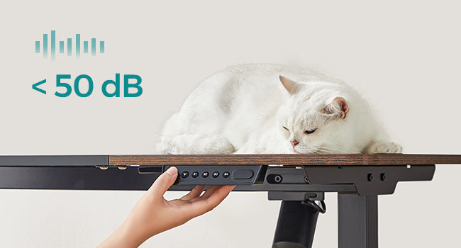 Dit elektrische bureau met stabiel stalen frame kan tot 80 kg dragen; een geluidsarm tafelblad met minder dan 50 dB bedrijfsgeluid